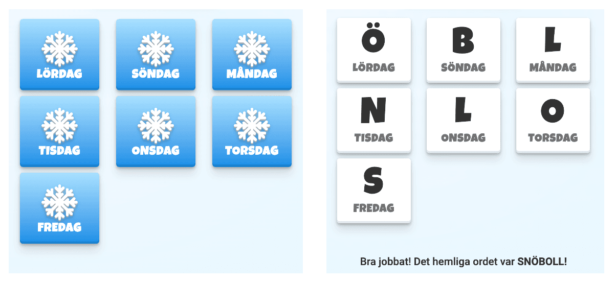 I slutet av lovet bildar bokstäverna ett hemligt ord eller meddelande. Löser man det belönas man med en lovmedalj specifik för just det skollovet.